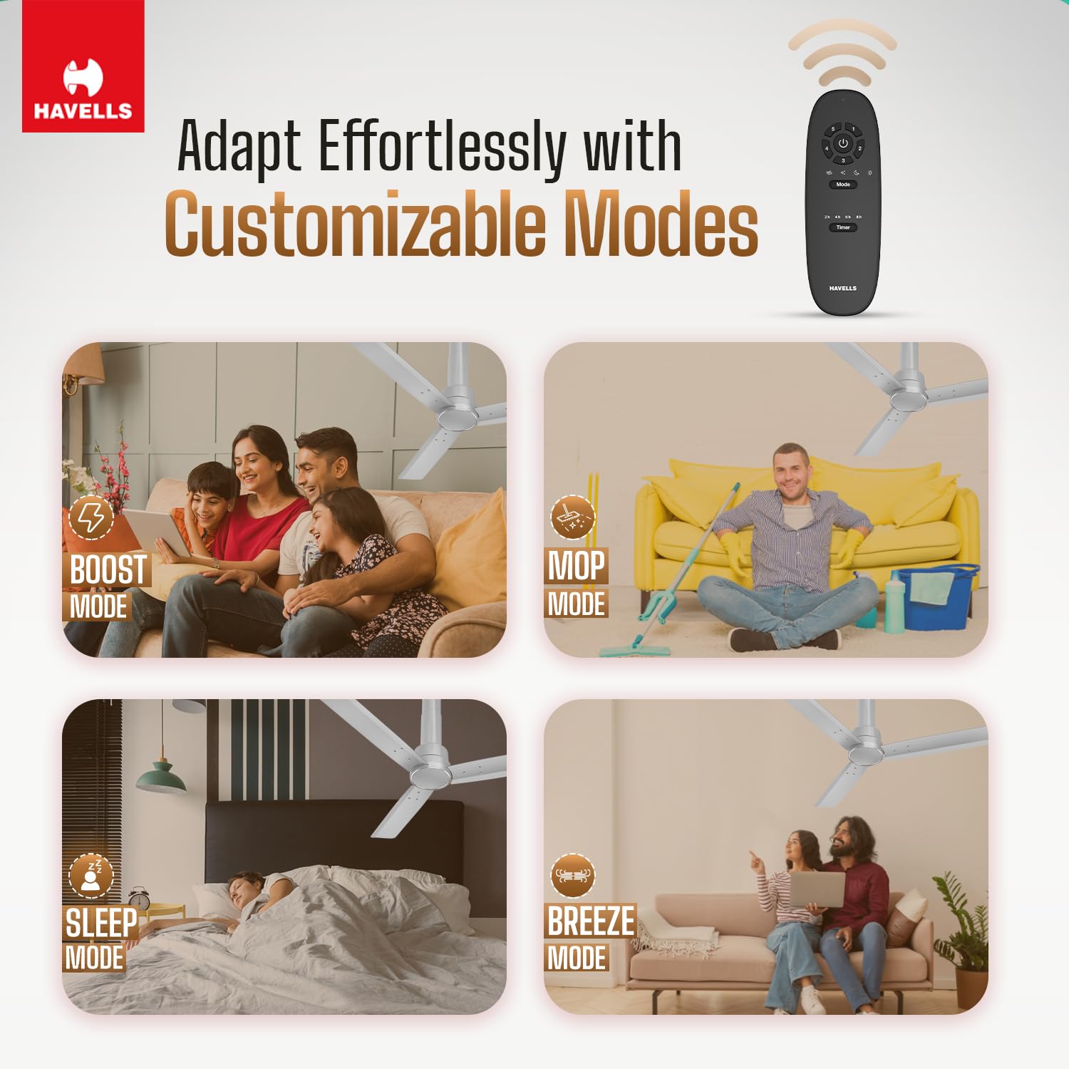 Havells 1200mm Elio BLDC Ceiling Fan | Remote Controlled, High Air Delivery Fan | 5 Star Rated, Upto 60% Energy Saving, 2+1* Year Warranty | (Pack of 1, Smoke Brown)