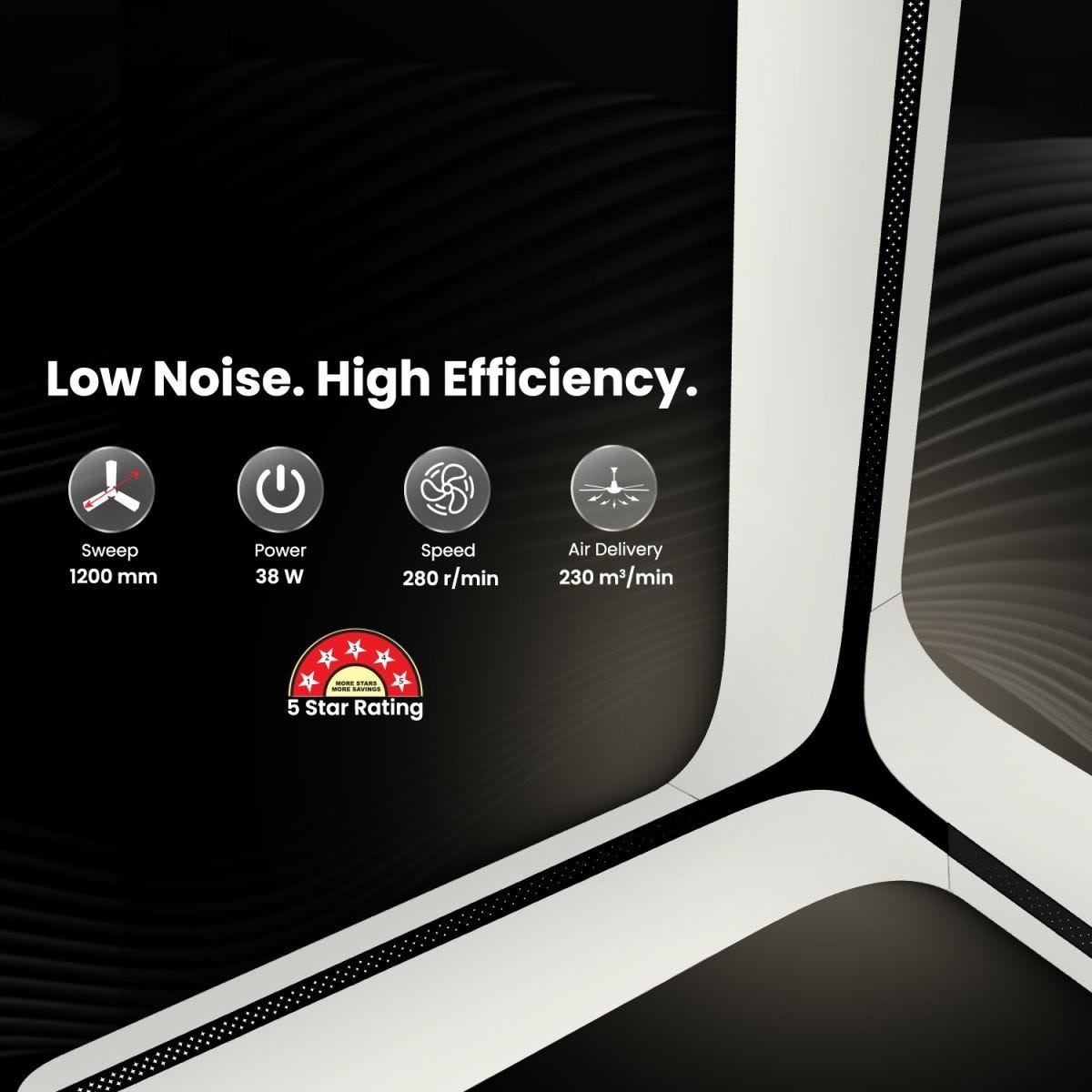 - 5-Star Rated BLDC fan delivering powerful airflow, uses 50 % less electricity than conventional fans, saves up to ₹ 1900* annually.