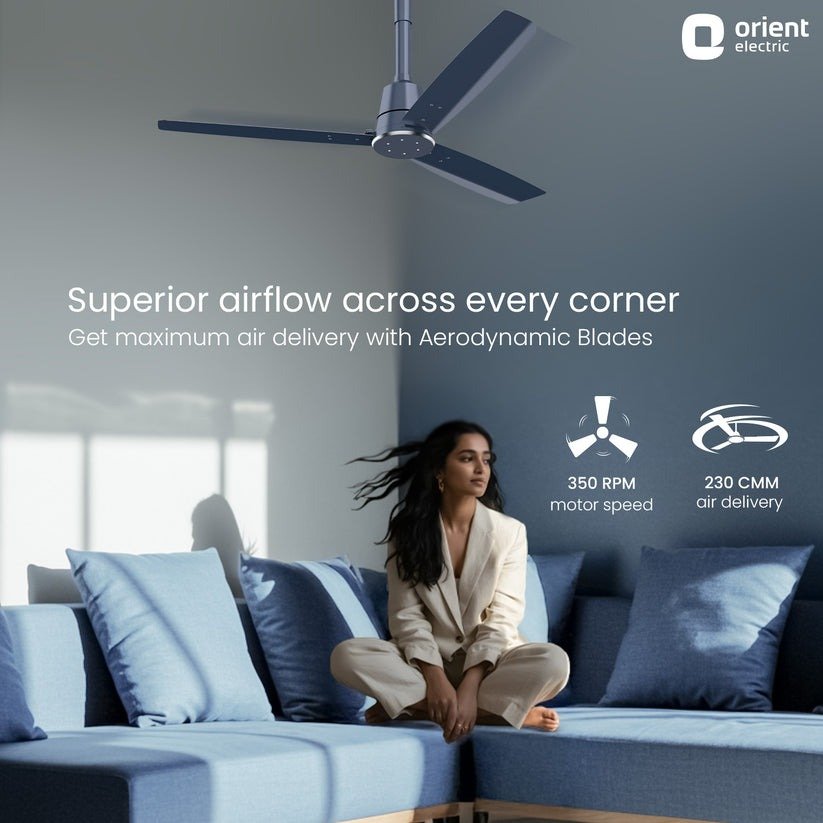 - Powerful Performance – Equipped with a high-speed 350 RPM motor and air delivery of 230 CMM, ensuring effective cooling and strong airflow across the room.