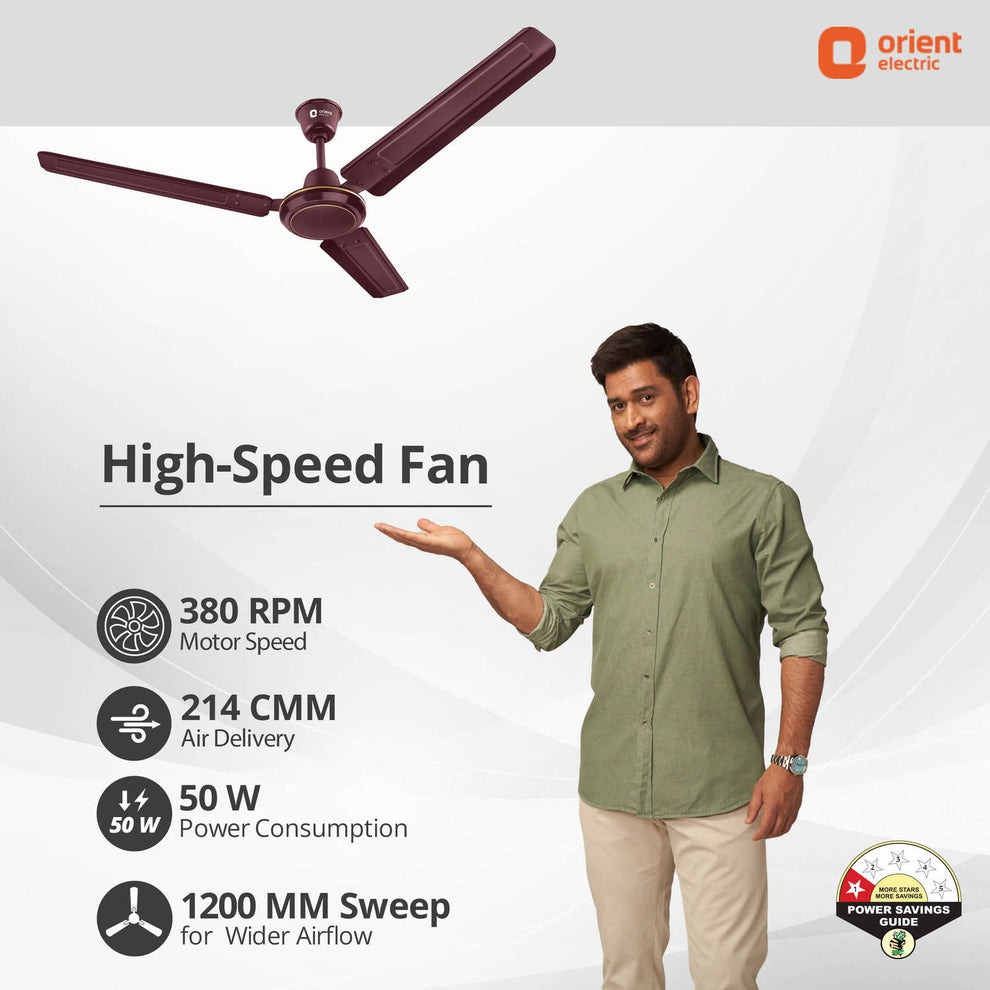 - High-Speed Fan with 380 RPM Motor: The ceiling fan features a robust 380 RPM motor, ensuring powerful airflow in all directions. With an impressive air delivery of 214 CMM and a generous 1200 mm blade sweep, it provides extensive ventilation coverage.