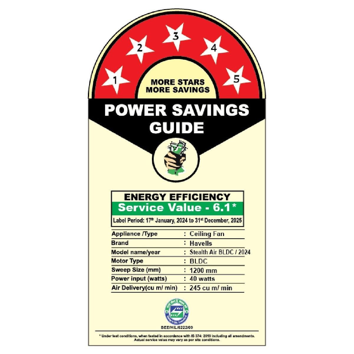 Havells Stealth Air BLDC 1200mm Ceiling Fan| Upto 55% Energy Saving| Silent & Premium| 5 stars Rating| 100% Copper Motor| RF Remote, Memory Backup, Timer|